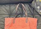 Coral canvas tote bag with faux leather straps. Reversible and comes with attached coin purse…$20 firm