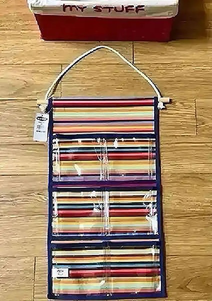 -Six pocket, hanging organizer from Old Navy 2003, used for a short time, measuring 27” (from hanger) x 11 1/4”