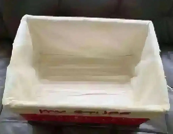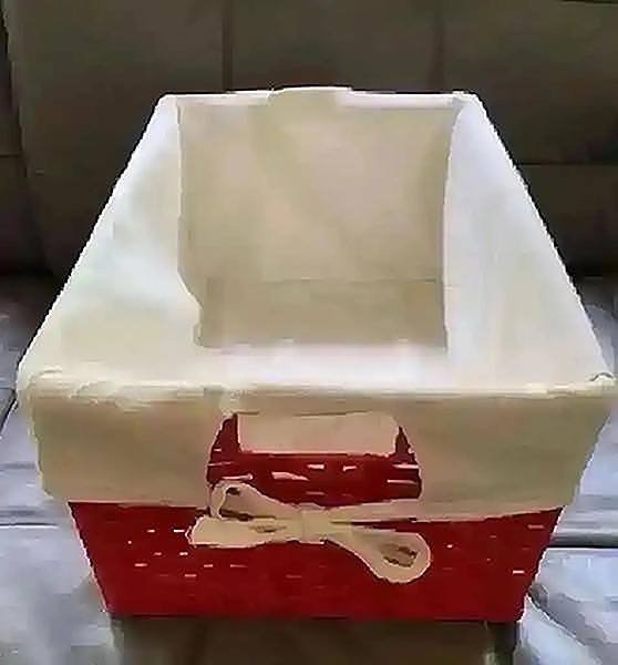 -“My Stuff” organizer tote basket with washable liner.