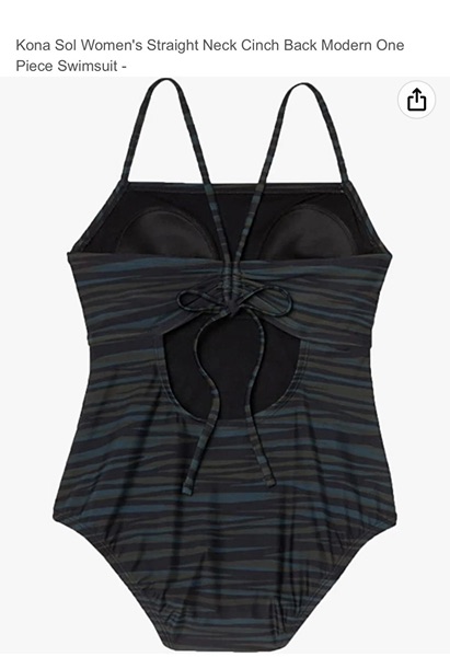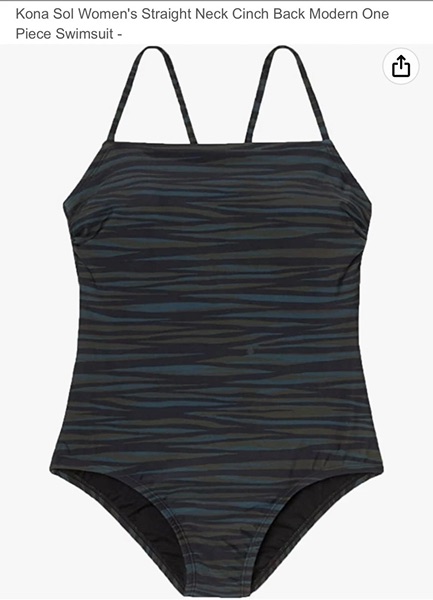 Brand is Kona Sol, size small (4-6). Black zebra stripe pattern, straight neck, spaghetti straps, cinch back with cut-out accent. New with tags from smoke free home. $10