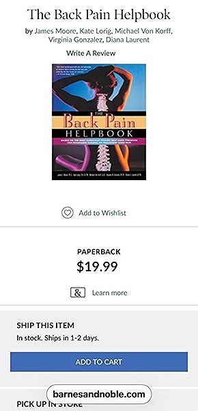 An estimated 8 million Americans require medical care or time off from work because of back pain each year. Despite advances in modern medicine, there is no cure for back pain and the most commonly prescribed remedy for this painful and debilitating condition is long-term self-management.A self-care program for better living, The Back Pain Helpbook includes mind-body methods for relaxation such as breathing and meditation techniques, strategies for combating the depression and fear that often accompany chronic pain, a comprehensive program for fitness including strengthening and stretching exercises, recommendations for prescription and over-the-counter drugs to ease back pain, advice for when to see your doctor and how to get the most out of those visits, tips for engaging in daily activities from sleeping to working to sex, and guidelines for avoiding flare-ups or managing them when they occur.