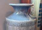Rustic Ribbed Terra Cotta Vase featuring a blue-gray crackle glaze and vertical texture. Approx. 8” tall x 5” wide…$20 firm