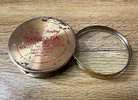 Outer brass casing shows wear, consistent with age. Inner magnifying glass is perfect, no chips/cracks. Approx. 3" round...$25 firm