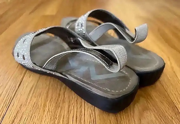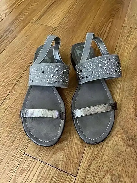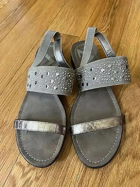 Stylish women's sandals with rhinestone embellishments. Rubber soles with comfortable elastic straps.