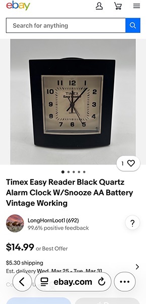 This vintage Timex small square alarm clock is a stylish vintage retro piece perfect for any room. Powered by battery, this quartz movement clock features a matte black plastic frame and a classic analog display with alarm capability and snooze button. Approx. 5 1/4" in height.