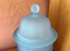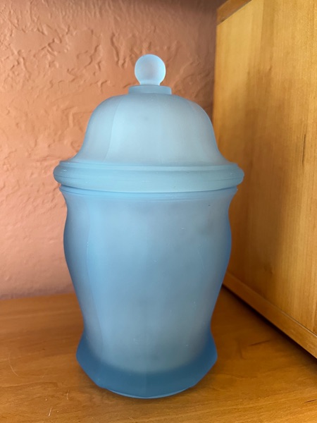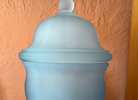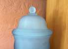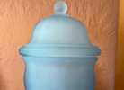 Vintage light blue satin glass cookie, apothecary or candy jar made by Indiana Glass Co. in the 1960s and 1970s.