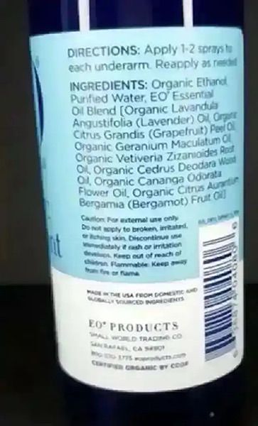 Tom's of Maine Sensitive Care Deodorant Stick and EO Organic Deodorant Spray.