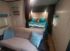 - Kitchen: 3‑burner cooktop, oven, microwave, double sink, 6 cu ft refrigerator – runs on both electric and propane,