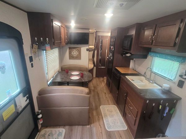 Condition: Exceptionally clean, well‑maintained, adult-owned/very light use, always stored under cover, recently cleaned and waxed, roof recently inspected, everything functions as it should. Great layout for families, ½ ton truck towable. You won’t find another one in similar year range that’s any cleaner or in better condition.