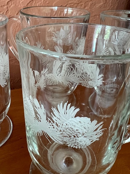 Glass Mugs with Pinecone Design