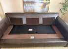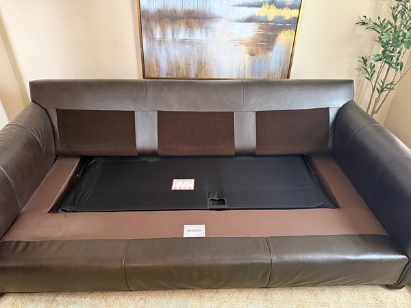 RESTORATION HARDWARE LUX SOFA BED-it’s in excellent condition. In the color “Burnham Slate” (dark brown) & no longer available online. Pulls out into a queen bed-Mattress is in good condition. There’s no rips, signs of normal wear. Small scuffs from transporting. Sturdy and it’s VERY Heavy.
