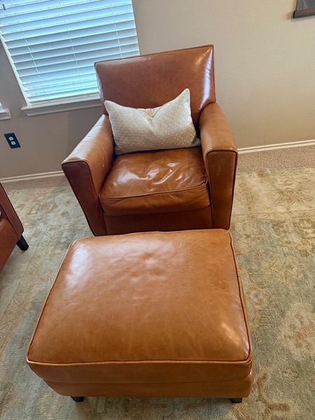 This GORGEOUS Sofa is from the “Klassner” collection. Really comfortable, the seats are firm and down. Theres no rips or stain, minimal wear. Top grain leather. The color is beautiful in person. It’s called “ steamboat Chestnut”. Just been conditioned and ready for its new home.
