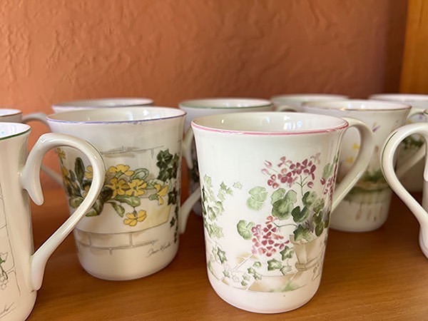Beautiful floral design mugs, perfect for tea or coffee. Eleven mugs total…$50 total