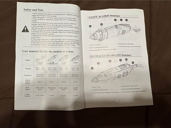 BRAND NEW GoxAwee Rotary Tool Kit Looking for a versatile tool for your DIY projects, crafts, or home repairs. This GoxAwee Rotary Tool is powerful, precise, and ready to use! 100% Brand New: Never used, still in its original box. 120 V. Complete Set: Includes the heavy-duty hard-shell carrying case and all original accessories. Key Features: Variable Speed: Easily adjust the power for different tasks like sanding, cutting, or engraving. Comprehensive Accessory Kit: Comes with a huge variety of bits for polishing, grinding, and drilling (see photos). Ergonomic Design: Lightweight and easy to handle for detailed precision work, Includes a transparent protective shield attachment. Perfect for working with wood, metal, glass, or plastic. A must-have for any workshop or hobbyist!