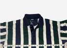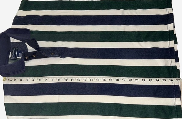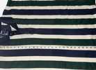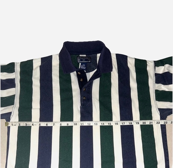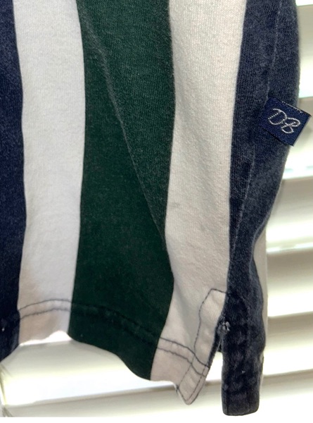 Vintage men’s Drummer Boy polo, collection series, size medium, short sleeves, most likely from mid to late ‘90s. Features thick green and blue vertical stripes, a 4-button placket, blue collar, blue placket trim, blue sleeve trim. It’s 100% cotton. Shirt has some color fading on the stripes and a small spot on back right shoulder blade area. However, seams are intact and there are no known holes, tears, or rips. Overall good condition from smoke free home. $8