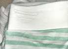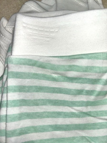 3-piece set, size 6-9 months. Includes a bodysuit with My First Easter, light green horizontal striped pants, and matching striped hat. New with tags but the grip on the pants hanger left impressions in the pants waistband. These aren't holes, and it might come out in the wash, but it's pictured for full disclosure. Smoke free home. $10