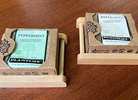 All natural, vegan plantlife soaps (1 Patchulli and 1 Peppermint) and includes two wooden soap holders that prevents soap from sitting in water and looks great on countertops or shower stalls! Pic. show similar items.