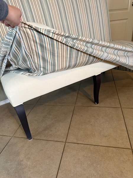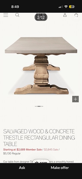 RH concrete table, High end slipcover bench and 2 RH chairs.