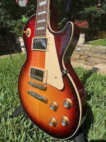 Excellent condition, very well cared for, never gigged, no marks or scratches, and includes hard-shelled case. It was professsionally setup at Texas Music Emporium and is ready to play. Only selling because it gets very little, if any, playing time since my purchase of a custom '59 Reissue. Local pickup only. It has a pair of '60s Burstbucker pickups and a fast '60s SlimTaper profile neck, mahogany body, maple top and rosewood fret board.