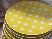 Fitz & Floyd Yellow Polka Dots Pattern Dinner Plates - Lot of 12