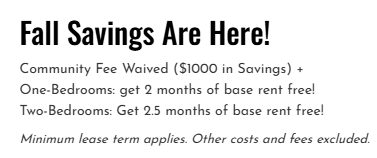 Two-Bedrooms: Get 2.5 months of base rent free!