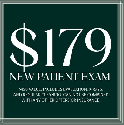 $450 Value, includes evaluation, x-rays, and regular cleaning, can not be combined with any other offers or insurance.