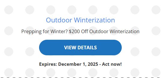 *Must mention the offer at the time of the sale. Cannot be combined with other offers or discounts. One per household. Additional terms may apply. Cannot be used on work prior done. Expires 12/1/2025.