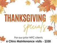 Thanksgiving is the season of gratitude, and we’re beyond thankful for our incredible patients! To show our appreciation, we’re offering a special on Chiro Maintenance Visits through Wednesday: