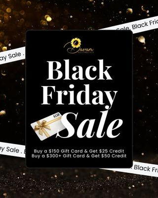 Our Black Friday special is LIVE. Buy a $150 gift card and get a $25 bonus credit. Buy a $300+ gift card and get a $50 bonus credit. The first 10 customers to purchase receive a free bonus gift. Offer valid today and Friday only at Davam Aesthetics. Call us at (713) 487-3010. - To prevent future messages, reply OPTOUT Sent from my iPhone