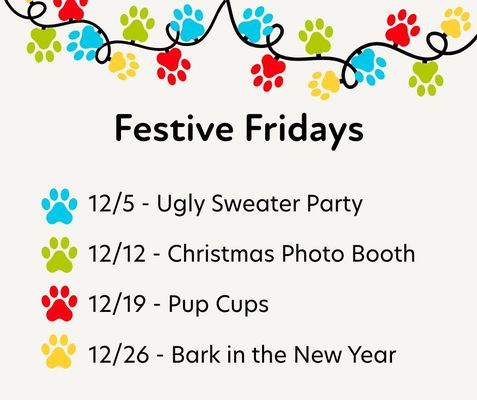 Get ready to unleash the holiday spirit at Playful Pack this December! Every Friday is a festive extravaganza, and your pup is on the VIP list!