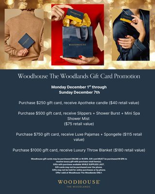 Bonus gifts MUST be picked up in-spa with gift card purchase