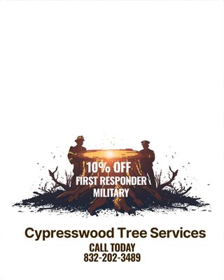 As a thank-you to those who serve our community and country, Cyprsswood Tree Services is proud to offer 10% off for First Responders and Military.