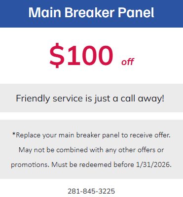 *Replace your main breaker panel to receive offer. May not be combined with any other offers or promotions. Must be redeemed before 1/31/2026.