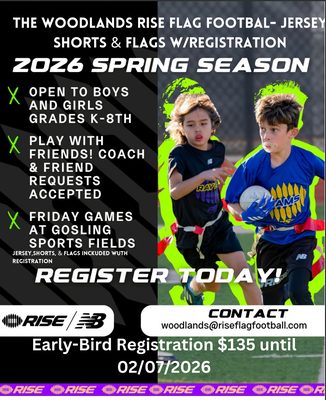 Sign up for the 2026 Spring Rise Flag Football Season for only $135 with Early Bird Registration.