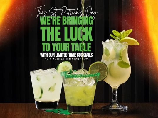 For a limited time, enjoy this St. Patrick’s Day special and raise a glass to bold flavor, good vibes, and a little extra luck. Don’t wait — it’s only here through 3/22.