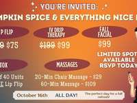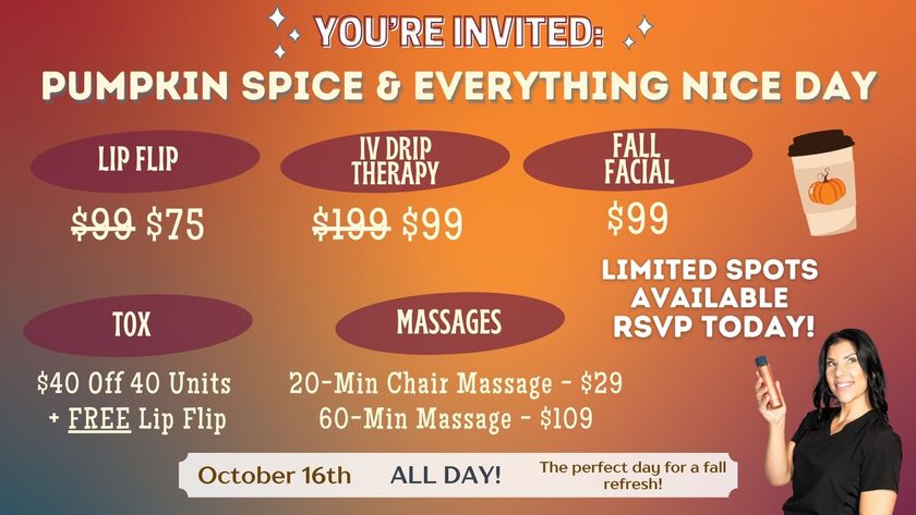Cozy up at Elite Medical Skin & Laser Center on Wednesday, October 16th for a fall-inspired day of pampering! By appointment only, you’ll get access to day-only specials on Tox, massages, fall facials & more. Plus, we’ll have warm drinks and seasonal snacks to make it extra festive.
