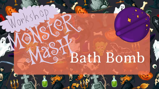 Create 6 fizzy Halloween bath bombs in spooky colors and scents! π₯ Stop by 2–6 PM, all supplies included. One reservation per person — no add-ons. Bath bombs are ready to take home the same day. Pay in advance or at workshop. Perfect for kids and adults!