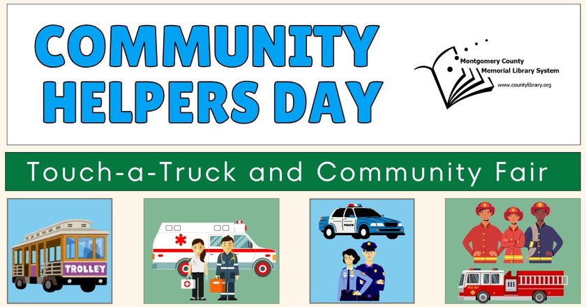 Join Mitchell Library in celebrating our Community Helpers with a Touch-a-Truck opportunity and Community Information Fair in partnership with The Woodlands Township.