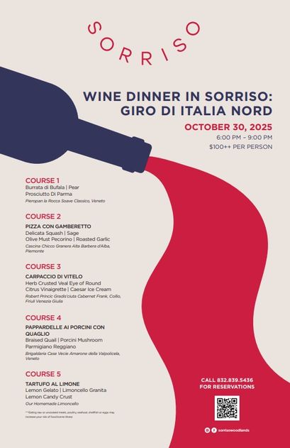 Embark on a culinary journey through Northern Italy with a refined five-course tasting menu showcasing the season’s finest flavors. Delight in creamy burrata with prosciutto, tender veal carpaccio, and hand-rolled pappardelle with braised quail. Each course is expertly paired with premium Italian wines, culminating in a perfect finish - our signature house-made limoncello.