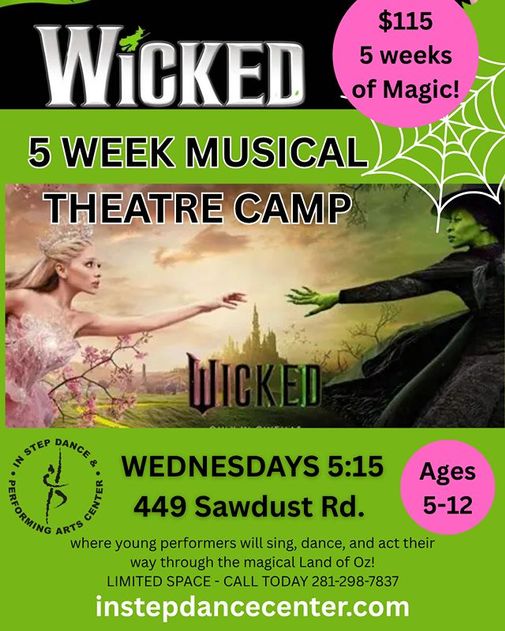 Join us for a 5-week “WICKED” Musical Theatre Camp where young performers will sing, dance, and act their way through the magical Land of Oz!