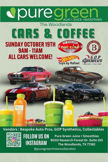 We’re back for another epic Cars & Coffee meetup at Pure Green The Woodlands!
