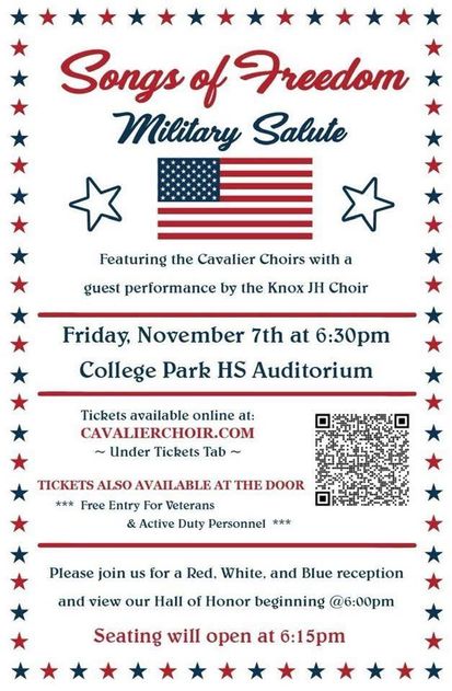 Songs of Freedom Military Salute featuring the Davalier Choirs with guest performance by the Knox JH Choir.