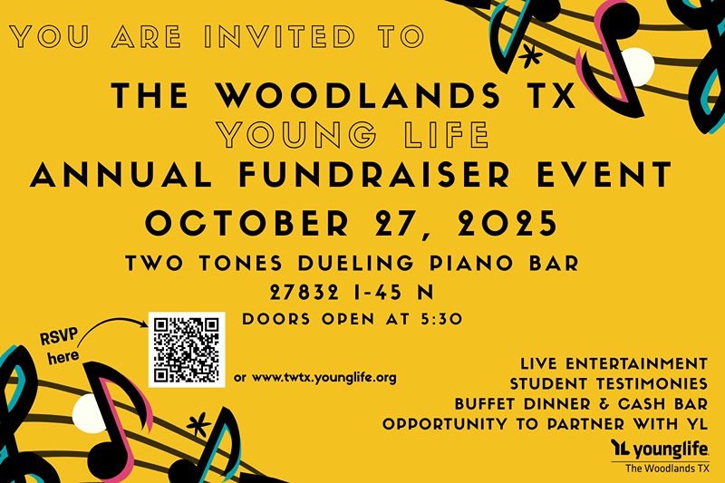 The mission of Young Life started with a prayer so big that only God could do it. Nearly 85 years later, that prayer still continues to this day and that is every kid can have the chance and right to know the Savior. By registering today, you will join many others who have prayed for high school kids BY NAME in our community. We can't thank you enough for being a partner and champion of The Woodlands TX Young Life! We look forward to seeing you at Two Tones!