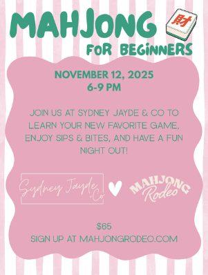 I’m coming to the east side of Spring! We’re hosting a Mahj 101 class for beginners at Sydney Jayde & Co! This store is so great! You won’t leave empty handed :)