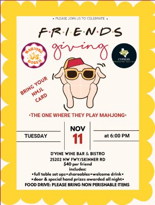Your ticket includes hours of mahjong play, shareables, a welcome drink, and chances at door prizes & special hand prizes!