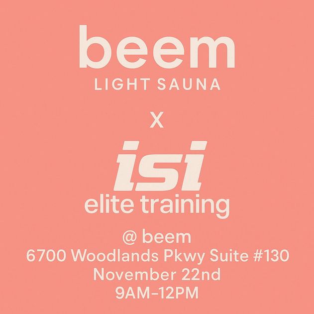 oin us for a morning of wellness, recovery, and performance! beem Light Sauna is teaming up with Elite Training for an exclusive pop-up event on Friday, November 22, from 9 AM – 12 PM at beem in The Woodlands.
