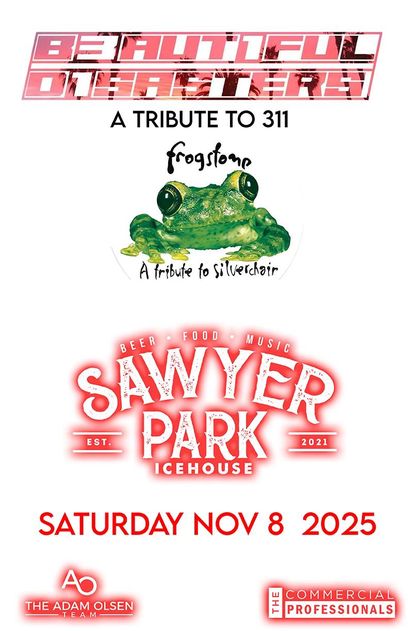 Beautiful Disasters and Frogstomp hit the indoor stage at Sawyer Park Icehouse this Saturday, November 8th at 8 PM!