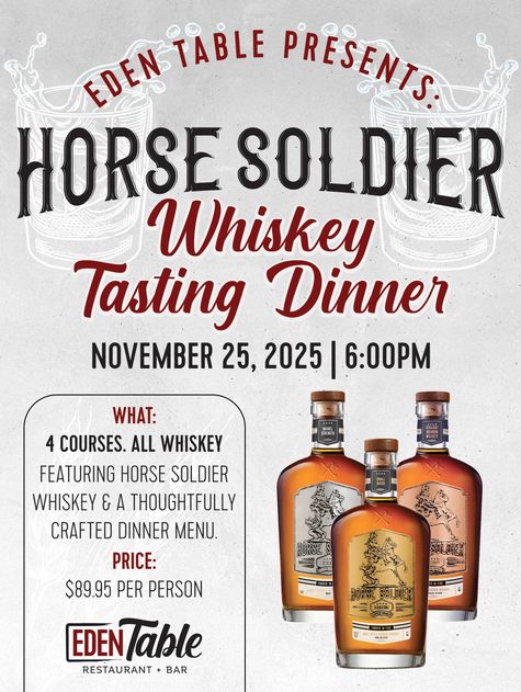 Join us on November 25th for an exclusive Horse Soldier Whiskey Dinner — a night where rich history meets exceptional bourbon and chef-inspired cuisine.