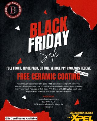 Now through December 15th, we’re giving you a FREE @xpel ceramic coating with an 8-year warranty when you book any of our PPF packages: Full Front, Track Package, or Full Body PPF.