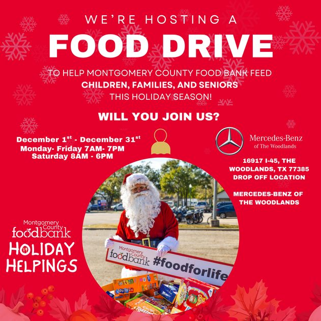 We're hosting a Holiday Food Drive to support the Montgomery County Food Bank and help feed children, families, and seniors this season.